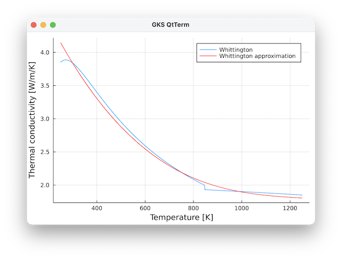 julia> T,k,plt = PlotConductivity(p)GeoParams.MaterialParameters.Conductivity.T_Conductivity_Whittington_parameterised Type
