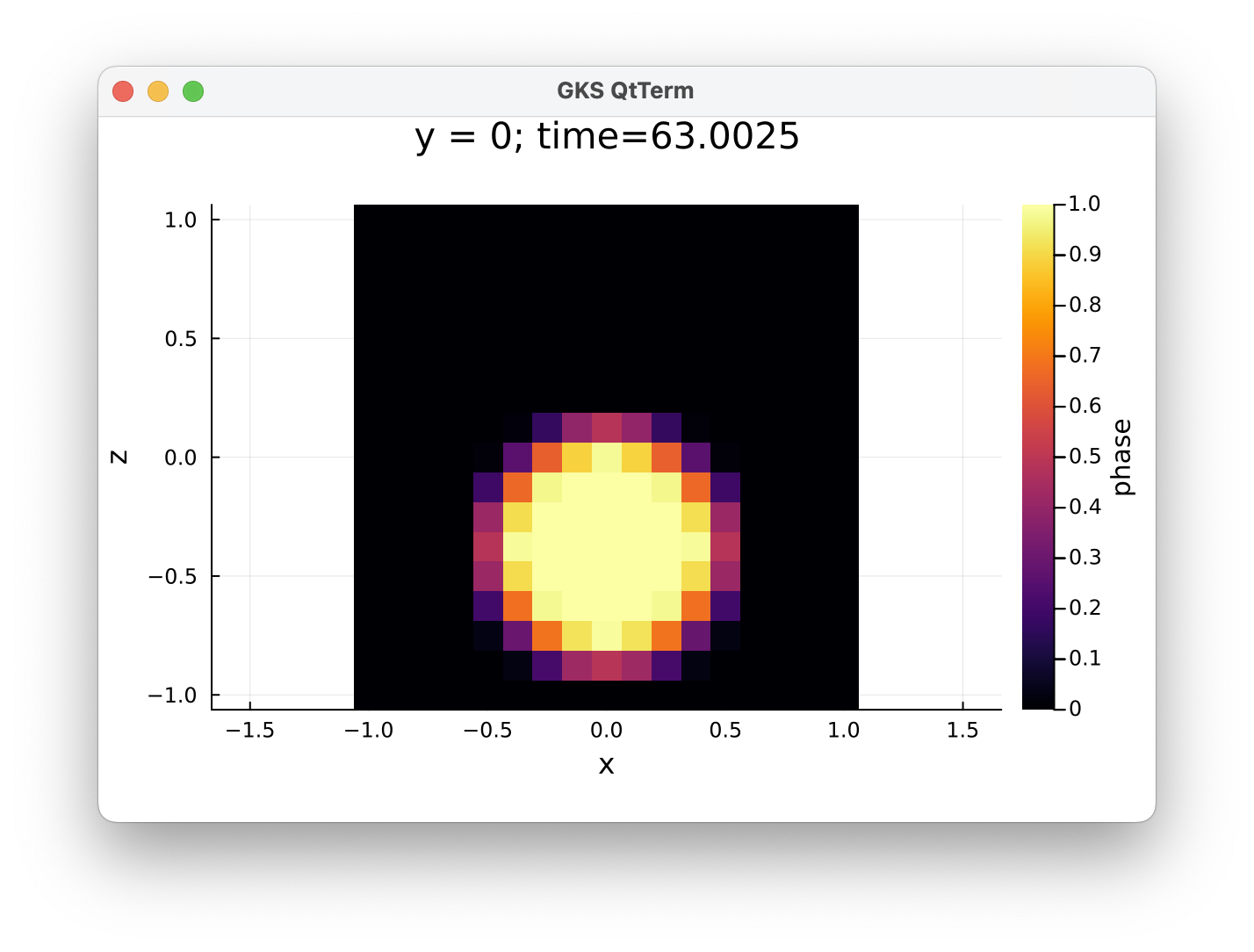 julia> plot_cross_section(model, y=0, timestep=20, field=:phase)